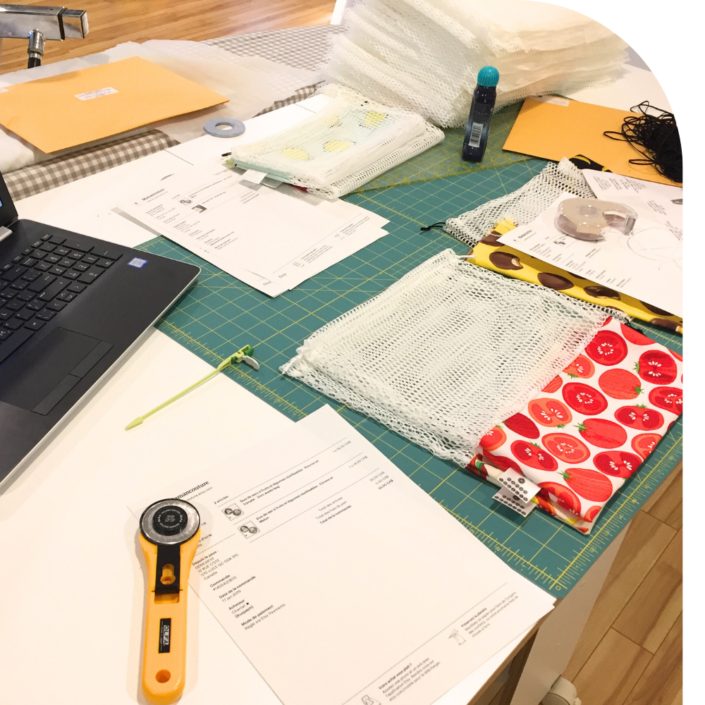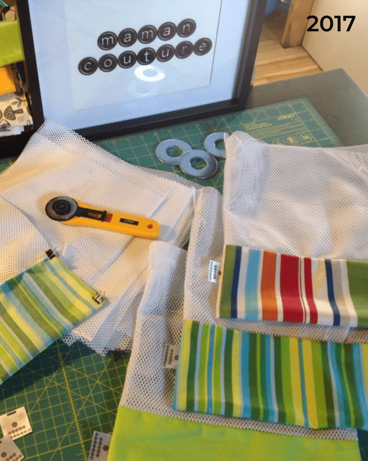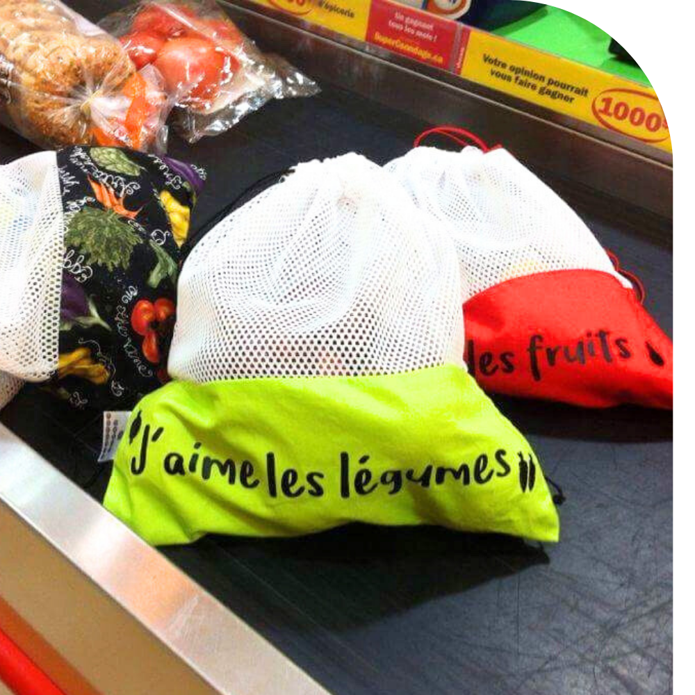 Mes premiers projets de couture ont d'abord été pour mes trois filles. Rapidement, j'ai eu envie de faire des éléments zéro déchet pour combler mes besoins personnels. J’ai donc décidé de développer un sac pour faire mes achats de fruits et légumes à l’épicerie, afin de répondre à mes propres besoins. Après des essais et plusieurs prototypes, j‘ai fini par développer, selon moi, le meilleur et plus beau sac à fruits et légumes réutilisable sur le marché. J'avais donc le goût d'en faire profiter le plus grand nombre de personnes et ainsi faire une différence pour notre planète.