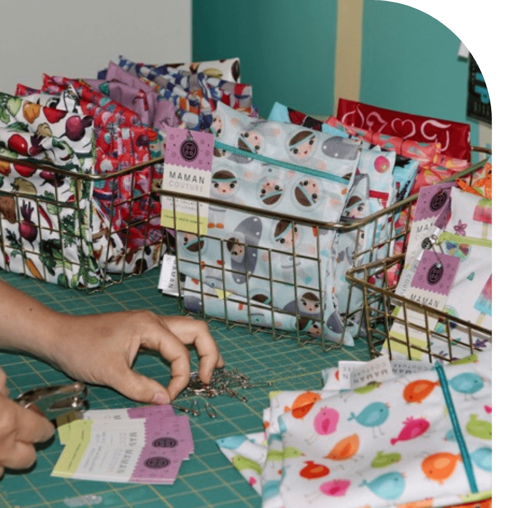 En mai 2017, la demande est plus grande pour mes sacs à fruits et légumes réutilisables. Je me lance donc, moi-même, dans la création d'une boutique ETSY. Je découvre alors des clients fantastiques qui adorent mes produits. Les sacs Maman couture prennent donc la direction de plusieurs régions du Québec, en passant même par la Colombie-Britannique, l'Alberta et le Nouveau-Brunswick.