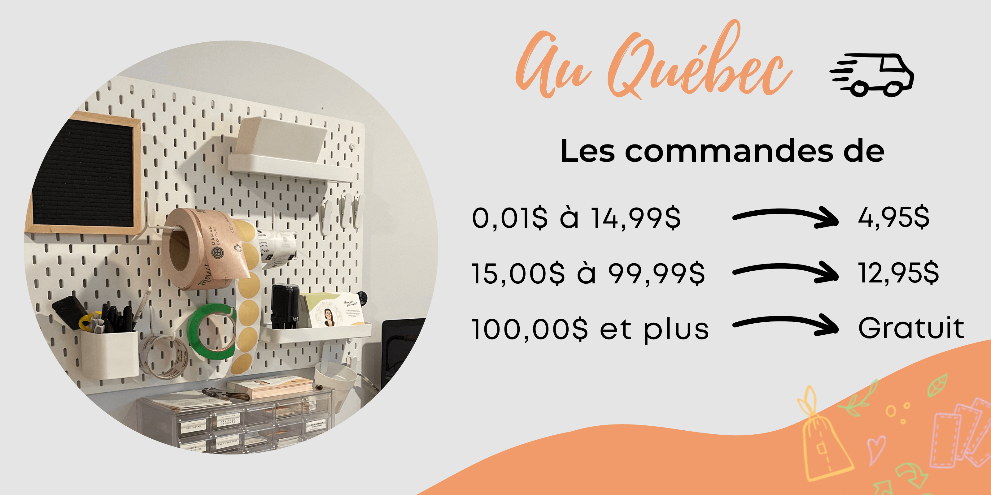- Trois jours ouvrables pour la livraison à l'intérieur du Québec.