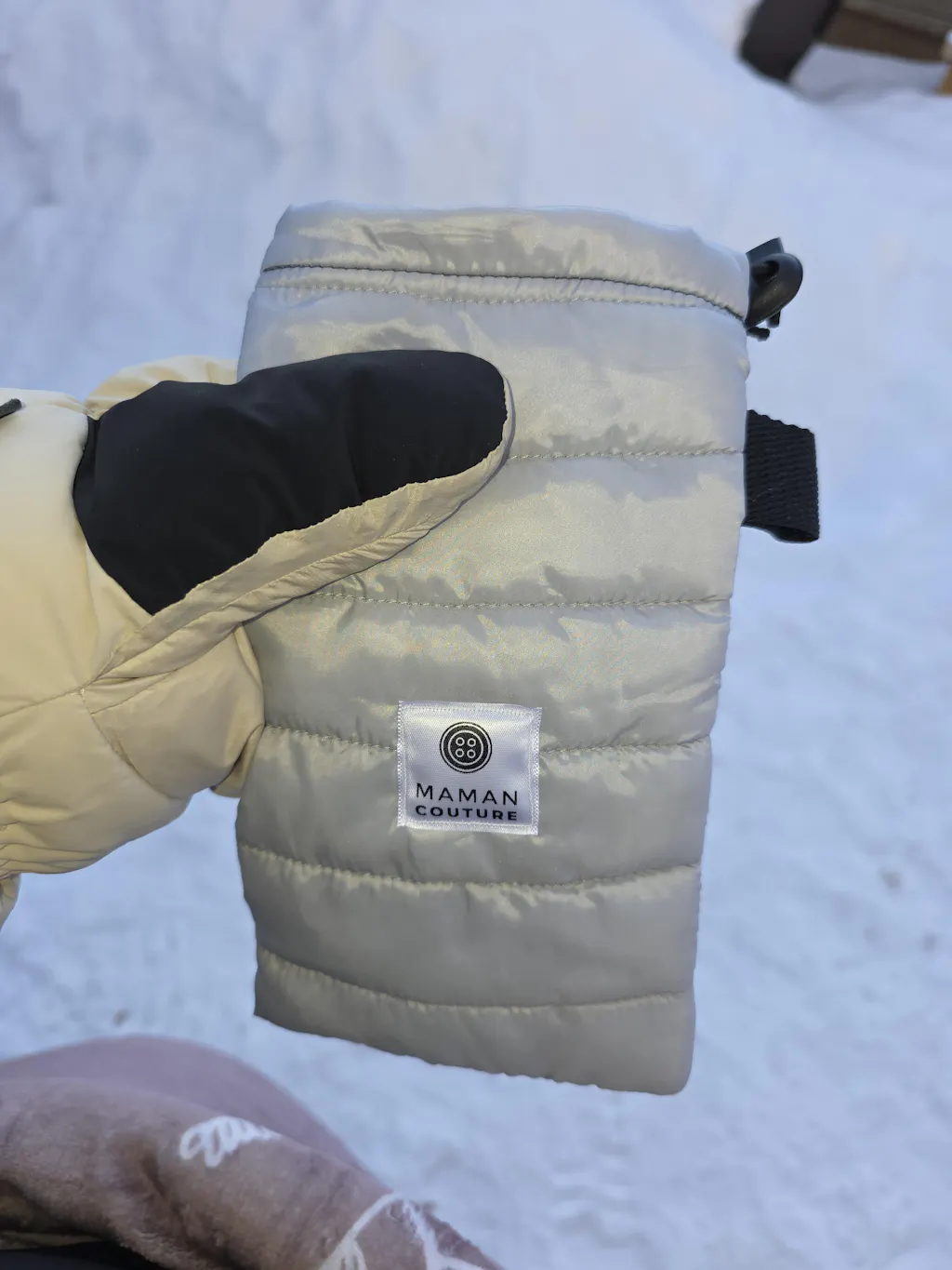 La pochette à cellulaire crée une barrière isolante qui permet de garder ton téléphone plus tempéré, tout en le protégeant des petits chocs du quotidien. Pratique et léger, il s’utilise facilement même avec des gants et s’attache à ton sac, ton manteau ou la poussette grâce à sa petite sangle.